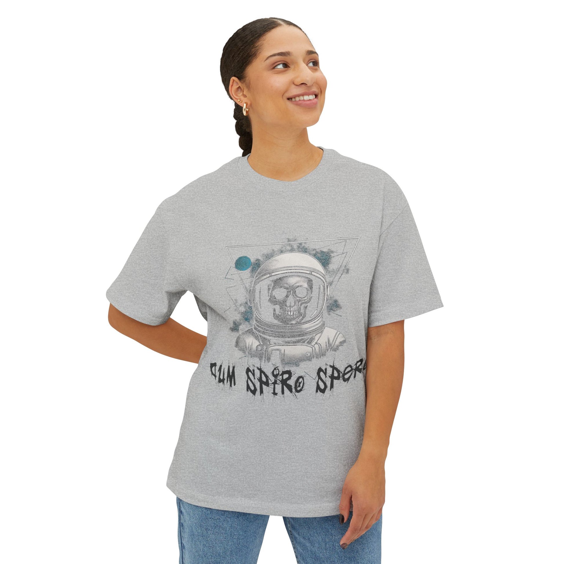 Latin for “While I breathe, I hope,” this shirt gives cosmic edge to deep thoughts. Featuring a skull astronaut lost among the stars, it’s bold, dark, and a little existential — just how you like it.